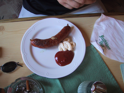 Wie wohl schmiegt sich das im Darm geborg'ne Schweinebrät in des Spielmanns Hand ...